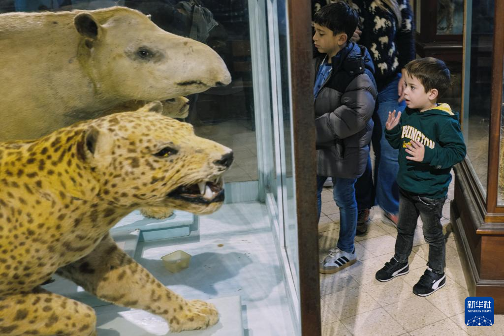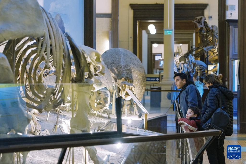 6月20日,小朋友和家长在阿根廷拉普拉塔博物馆内参观。
