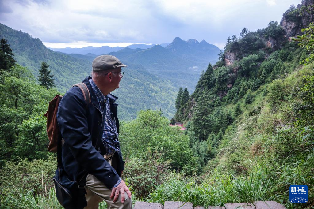 高文厚从甘肃省定西市岷县二郎山上走过(6月11日摄)。