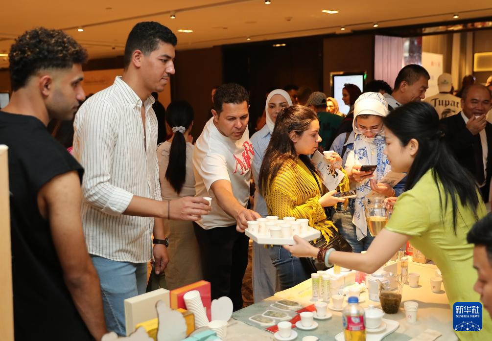6月24日,在埃及首都开罗,人们在“清新福建”文化和旅游推介会活动现场品尝中国茶。