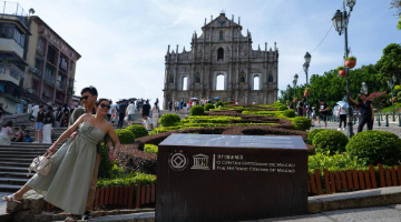 7月16日,参观者在汉魏洛阳故城遗址博物馆观看展品大吉瓦当。