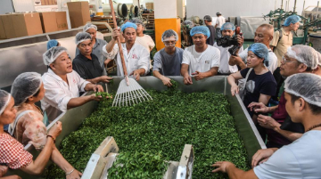 7月16日,参观者在汉魏洛阳故城遗址博物馆观看展品陶百花灯。