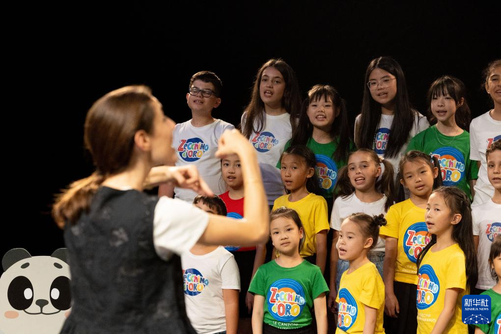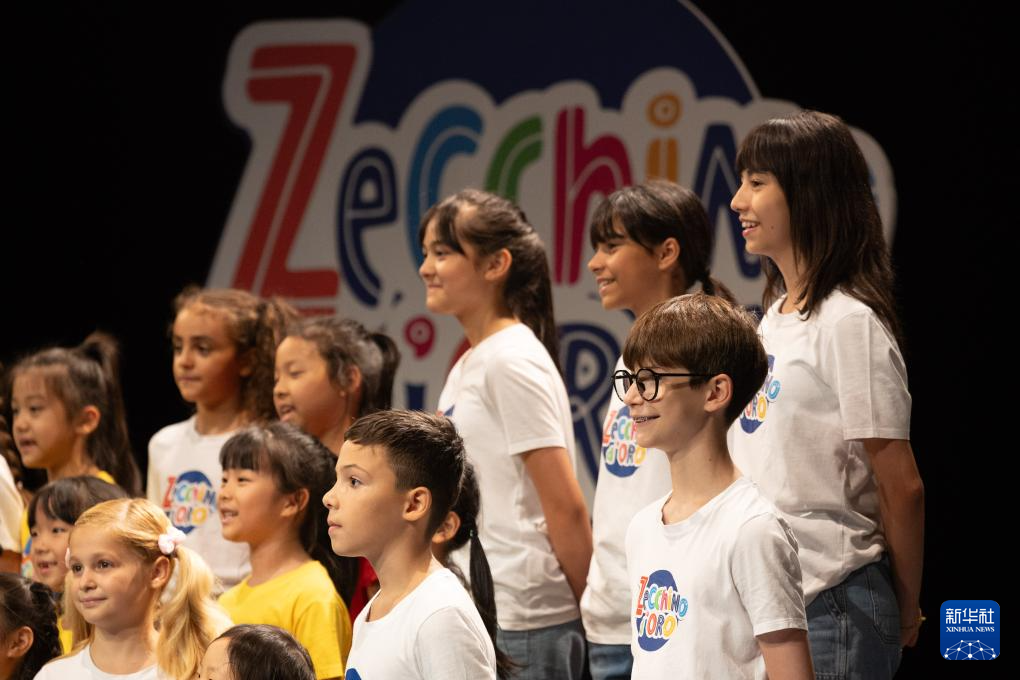 当日,来自中国上海的绣球花小合唱团与意大利安东尼亚诺小合唱团在博洛尼亚共同演唱意大利经典儿歌,展示2025夏令营的学习交流成果。
