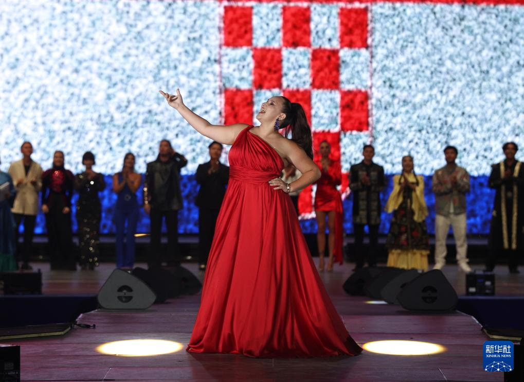 7月20日,在吉尔吉斯斯坦乔尔蓬阿塔,克罗地亚艺术家在第四届伊塞克湖国际音乐艺术节上表演。