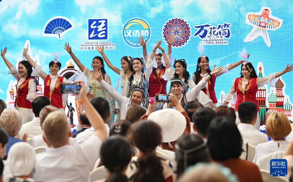 8月6日,上合国家青年学生共同表演歌舞节目。