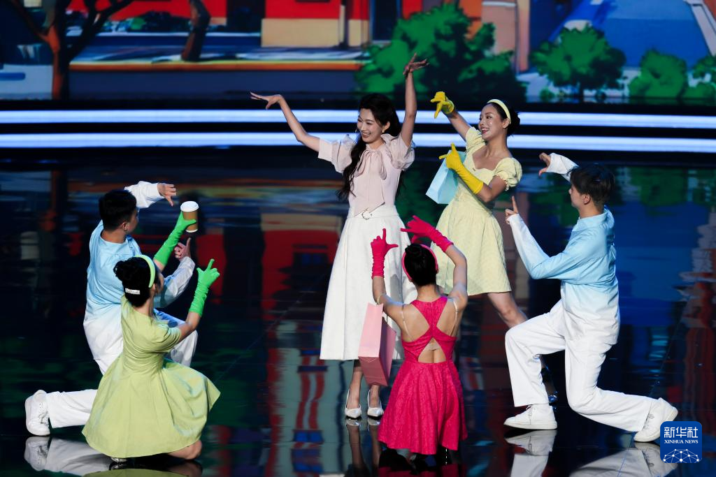 8月25日,演员表演歌舞《梦想之城》。