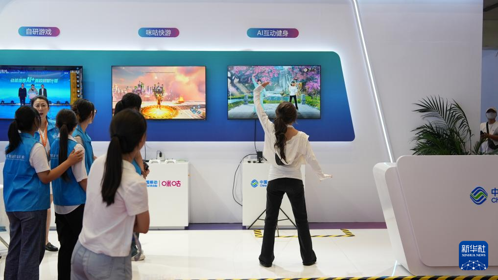 8月28日,观众在博览会上体验“中国古画里的传统节日——MR数字美育”项目。