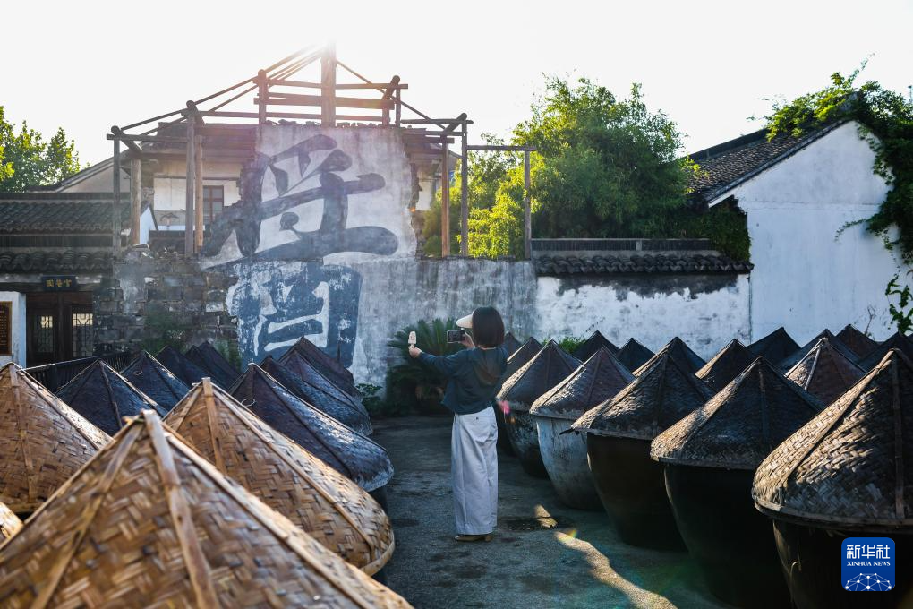 9月20日,游客在游览沈荡镇的中华老字号企业海盐沈荡酿造有限公司。中华老字号企业海盐沈荡酿造有限公司位于浙江省嘉兴市海盐县沈荡古镇,其前身为始创于清光绪年间的泰兴酱园,至今已有100多年历史。近年来,沈荡酿造在坚守传统、古法自然酿造的基础上,结合沈荡古镇旅游开发,配合打造“千年古镇、百年老厂”文旅综合项目,让更多人体验非遗和传统文化的魅力。