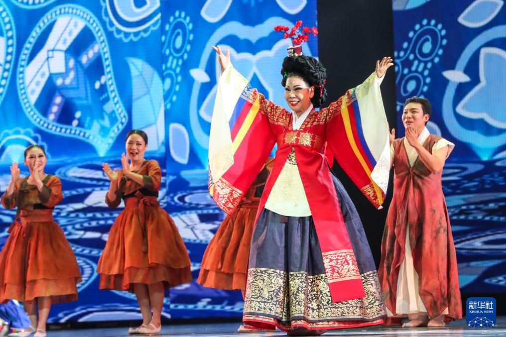 9月22日晚,来自韩国的演员在“相约敦煌”国际文化交流演出活动现场表演民俗舞蹈。