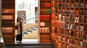 10月10日,在位于安徽合肥的一家花店,付玉兰挑选用于插花创作的花材。