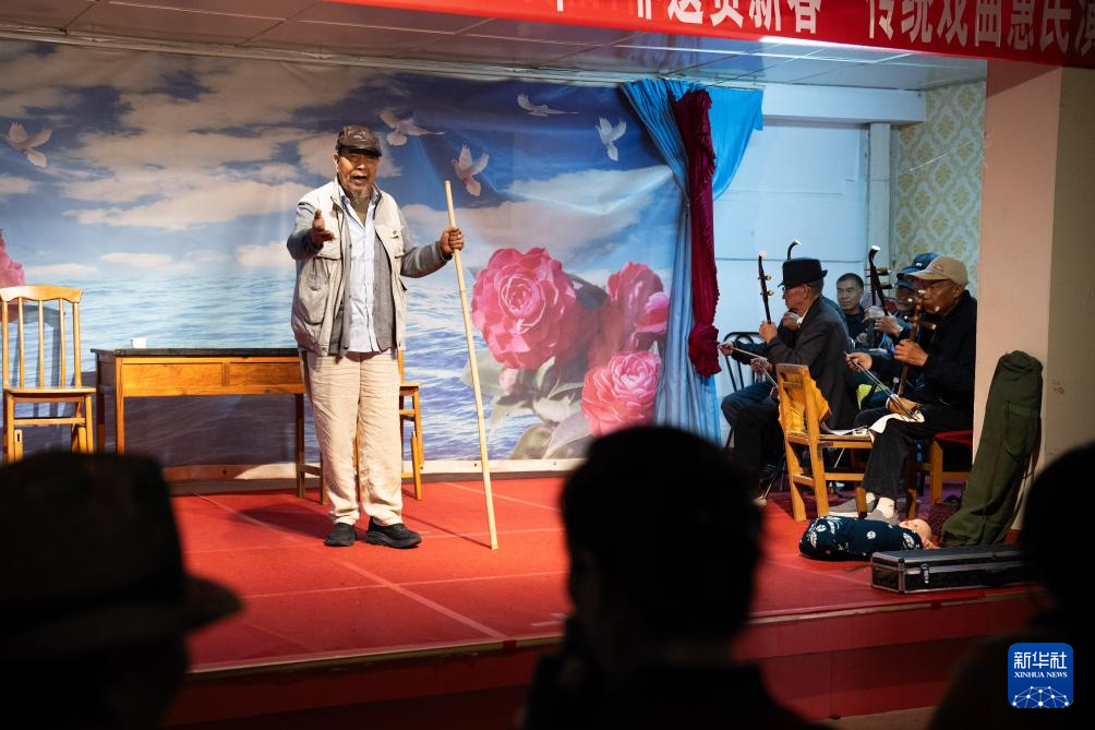 10月27日,金永才与戏友在昆明市云溪社区活动中心排练花灯戏。他常常登上花灯戏台与老友们共同演出,在婉转的唱腔与水袖翩跹间捕捉灵感。他试图将那流动的韵律、舒展的线条,融入坚硬的金属之中。