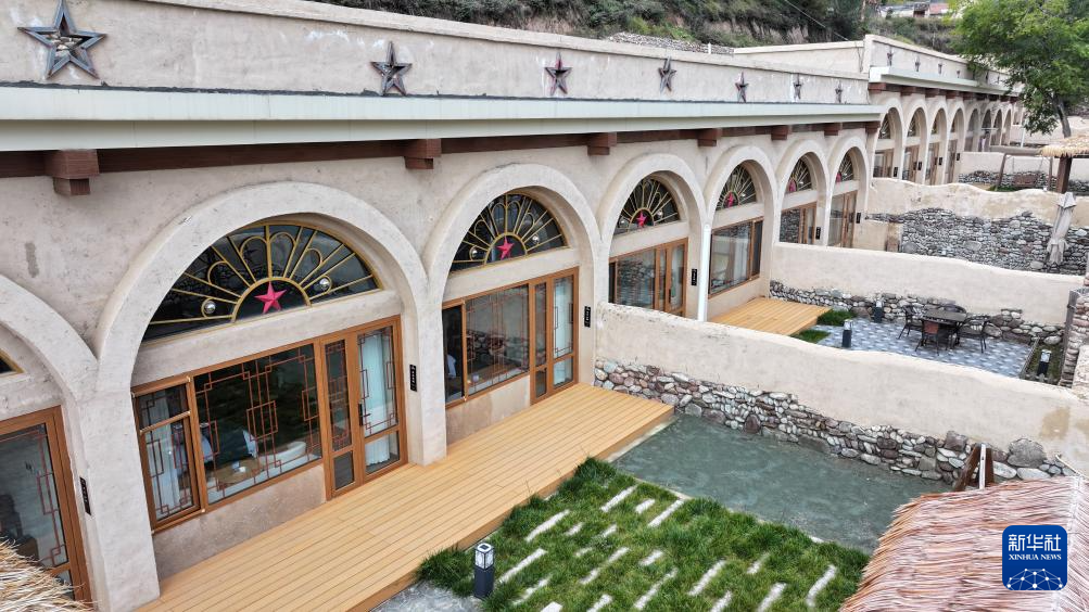 隆德县城关镇杨家店村窑洞民宿外景(无人机照片,10月26日摄)。