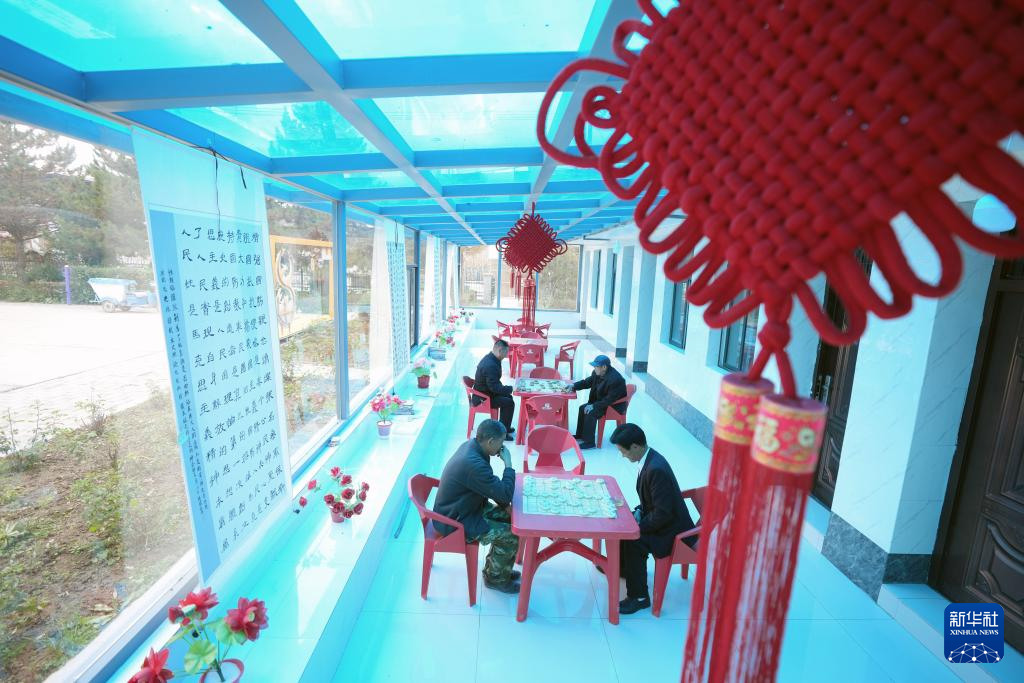 隆德县凤岭乡李士村村民在活动室下棋(10月26日摄)。
