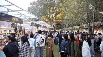 11月17日,民众在拉脱维亚首都里加举行的灯光节上欣赏滨海公园的灯光艺术装置。