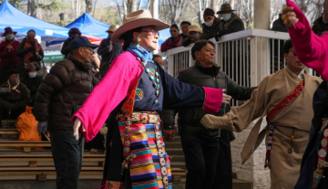 在拉萨市布达拉宫脚下的宗角禄康公园,每天清晨和傍晚,都有很多市民聚集在一起跳“锅庄”。各族群众的歌舞热情,让拉萨的冬日暖意融融。