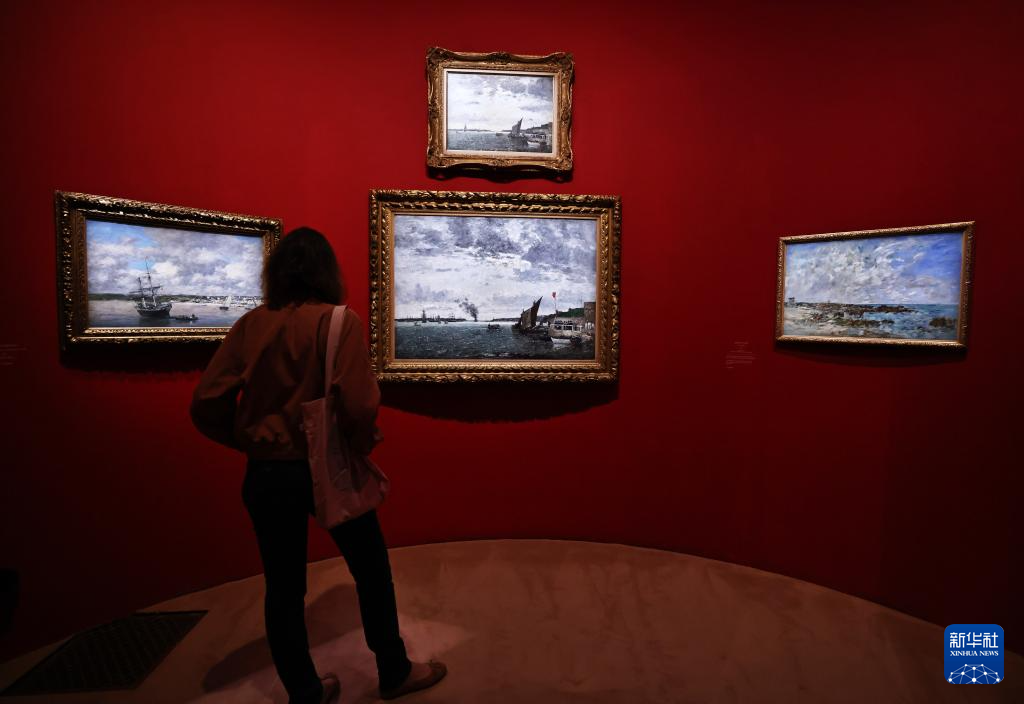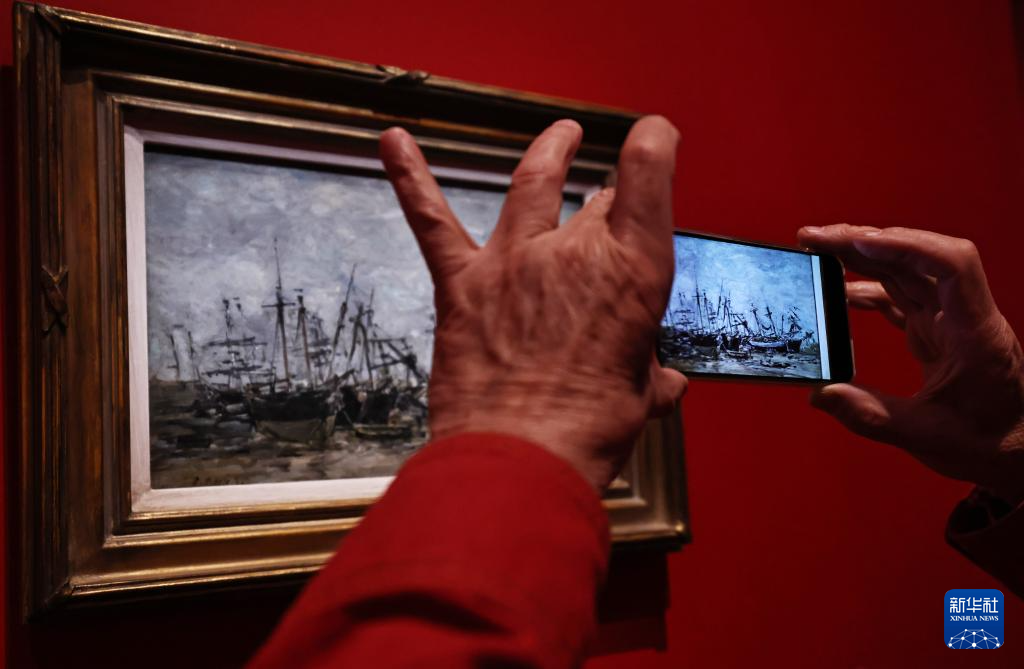4月8日,在法国巴黎玛摩丹美术馆,一名观众在《“印象派之父”——欧仁·布丹》特展的媒体预展上参观。