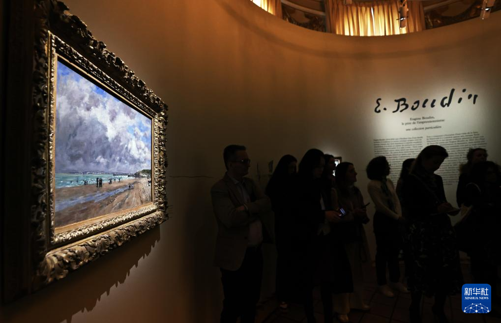 4月8日,在法国巴黎玛摩丹美术馆,人们在《“印象派之父”——欧仁·布丹》特展的媒体预展上参观。