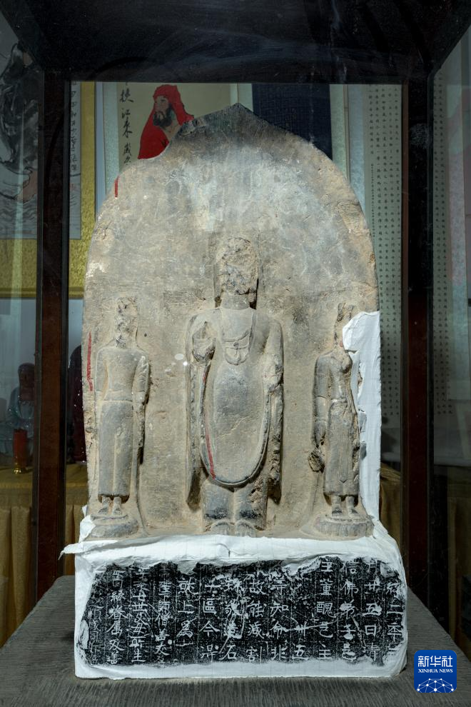 这是位于少林寺的《一佛二菩萨造像》碑正面(资料图片)。