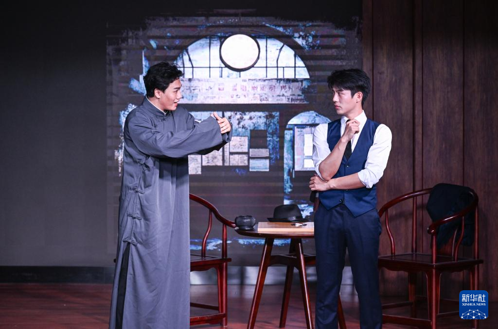 4月16日,在重庆市沙坪坝区文化馆,演员表演话剧《青山见》。