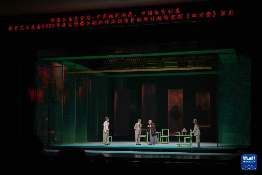 4月22日、23日晚,国家艺术基金2025年度大型舞台剧和作品创作资助项目——京剧《皿方罍》在湖南大剧院上演。新编京剧《皿方罍》由湖南省京剧保护传承中心创排,以国宝皿方罍百岁流转的真实史料为依据,讲述了1992年至2014年间,流失海外的皿方罍器身三度现世,终在多方努力下身盖合一、完罍归湘的故事。该剧还运用纱幕投影技术,打破传统京剧的舞台限制,营造出裸眼3D效果,使国宝故事更具感染力。