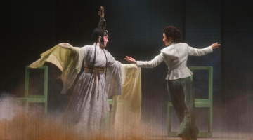 4月26日晚,演员在金城之夜汉服展演活动现场展示汉服。