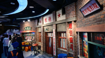 5月4日,游客在798艺术区内参观造梦现场电影艺术展。
