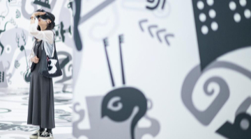 5月4日,游客在798艺术区内戴着VR眼镜游览。