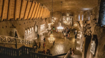维利奇卡盐矿位于波兰南部历史名城克拉科夫附近,是世界上最古老的盐矿之一。维利奇卡盐矿通道全长约300公里,最深处达地下327米,整条通道连接着约3000个洞室,其中仅一小部分对外开放。除了用于采矿的矿井、燃烧室、风道、排水系统等,矿工们还建造了教堂、盐雕画廊、地下湖泊等,构建起一座规模宏大的“地下城”。凭借其独特的历史、文化与艺术价值,维利奇卡盐矿于1978年被列入联合国教科文组织世界遗产名录。