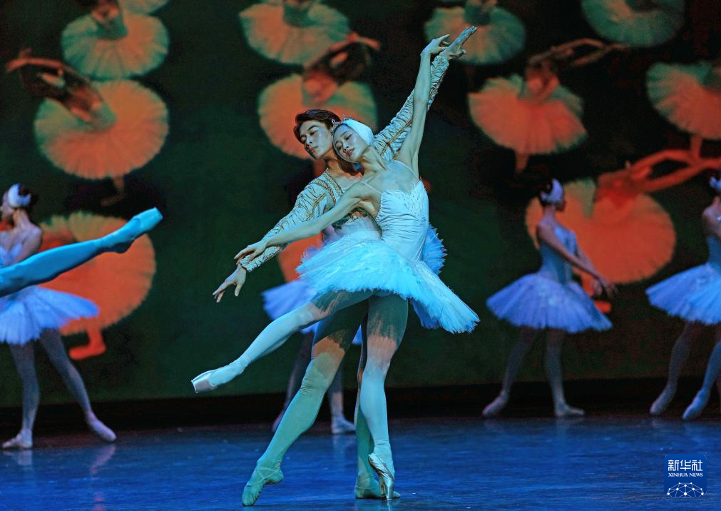 在上海大剧院举行的庆祝上海芭蕾舞团经典版芭蕾舞剧《天鹅湖》全球首演十周年特别活动上,上海芭蕾舞团演员吴虎生和戚冰雪在演出《天鹅湖》精彩片段(2025年2月15日摄)。