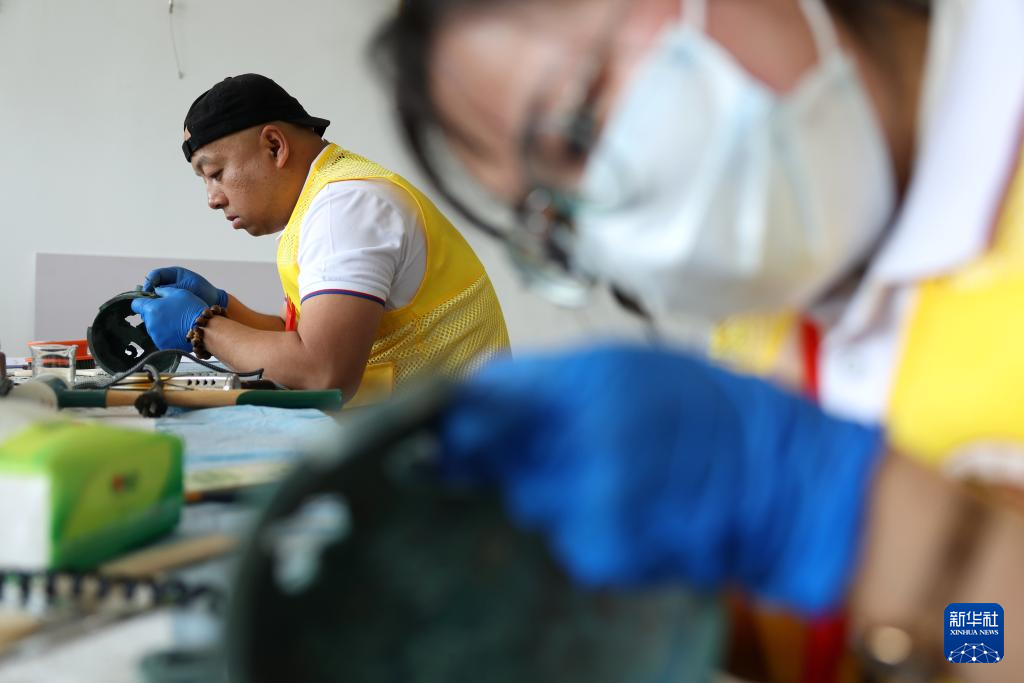 5月22日,来自新疆维吾尔自治区博物馆的参赛选手石亮在金属文物修复比赛中。