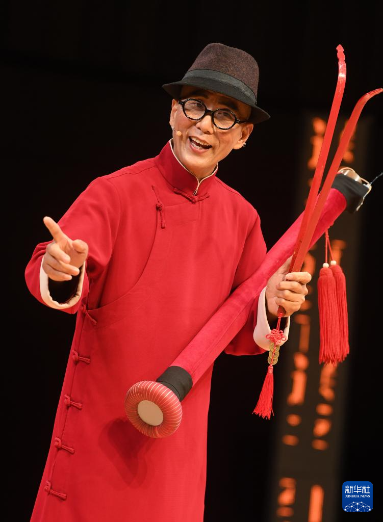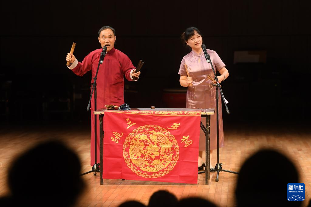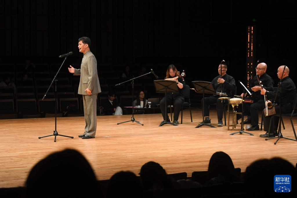 5月29日,民间艺人在音乐会上表演平湖钹子书。