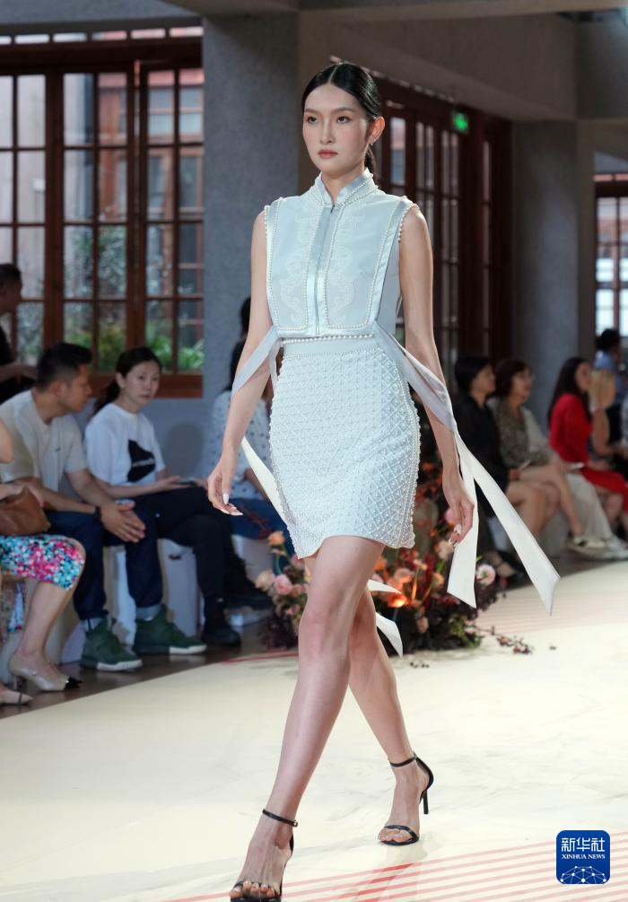 6月7日,模特在静安时尚文化周的“中式时尚高定秀”上展示时装。