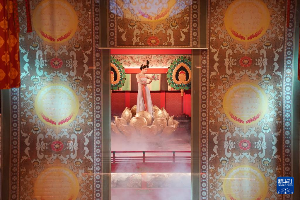 12月23日,演员在街区内表演大唐乐舞《霓裳羽衣舞》。