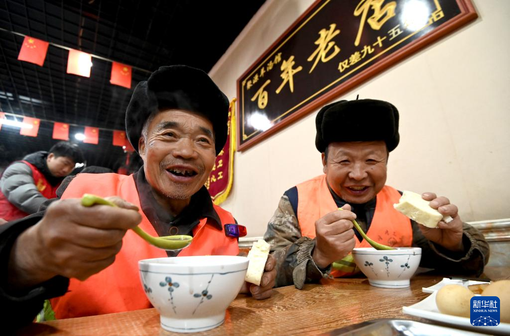 1月26日,在贵州省黔西市水西街道水西社区,老年人在品尝腊八粥。