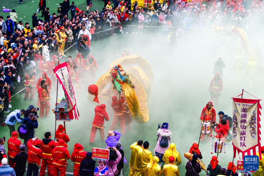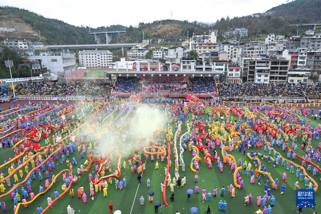 2月27日,贵州省铜仁市石阡县举办主题为“龙腾马跃·福满阡城”的仡佬毛龙节贺新春活动。来自全县的80支毛龙队和9支非遗展演队齐聚石阡县城,举行毛龙巡游、毛龙祈福、舞龙大赛、非遗展演等活动,欢庆毛龙节,喜迎新春。