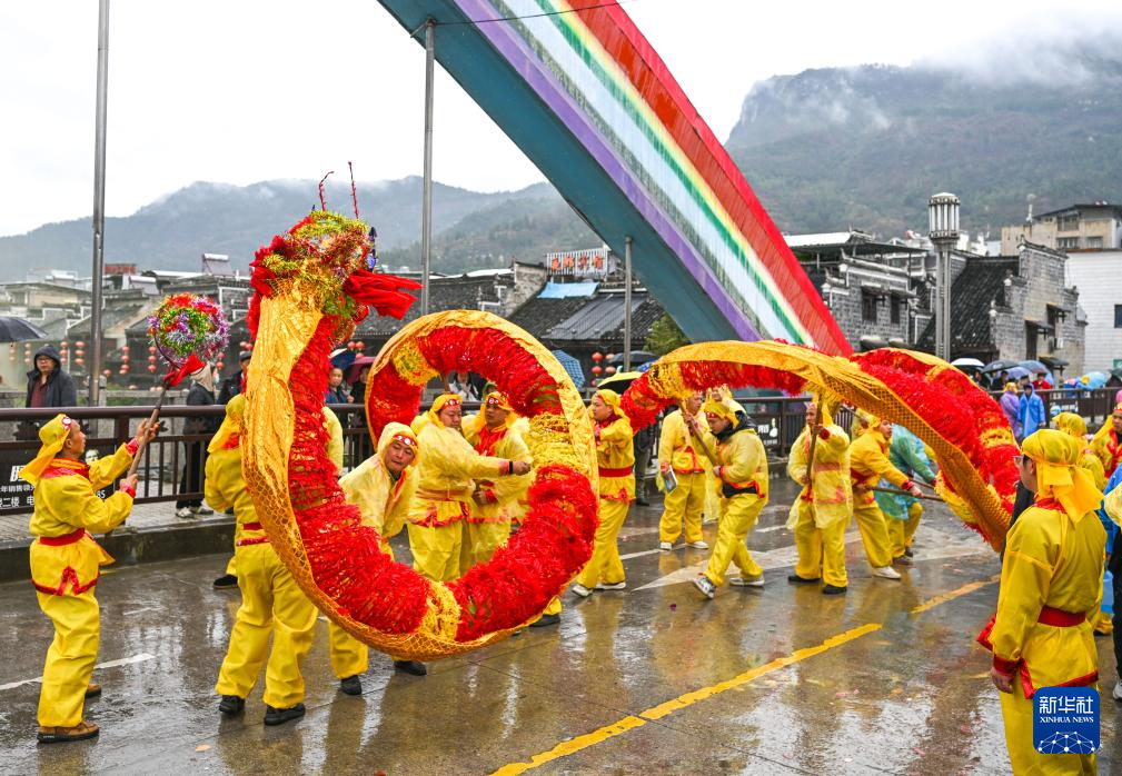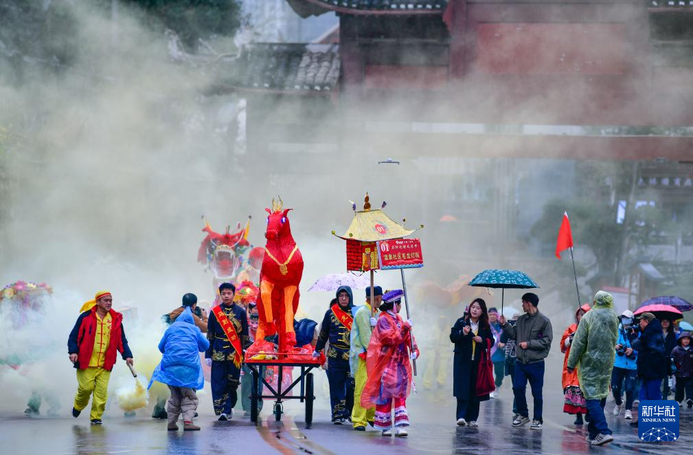 2月27日,人们在贵州省石阡县仡佬毛龙节上参加毛龙巡游。