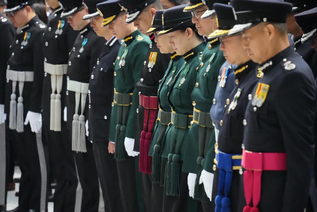 11月29日,香港特区政府举行悼念活动,哀悼大埔宏福苑火灾中不幸罹难的人士。特区政府建筑物国旗和区旗下半旗。新华社记者 朱炜 摄