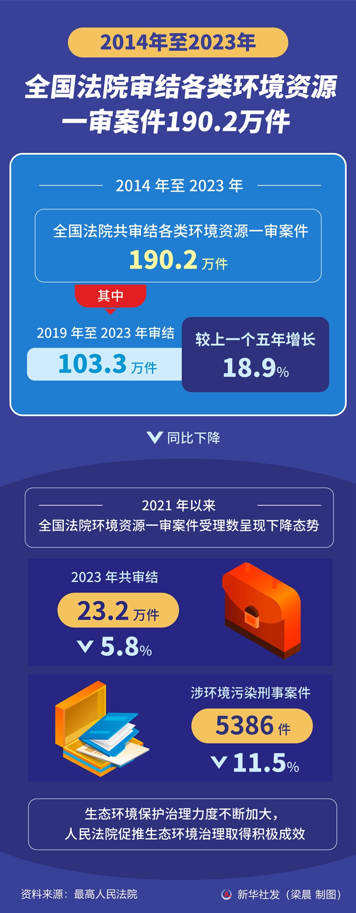 2014年至2023年全国法院审结各类环境资源一审案件190.2万件-新华网