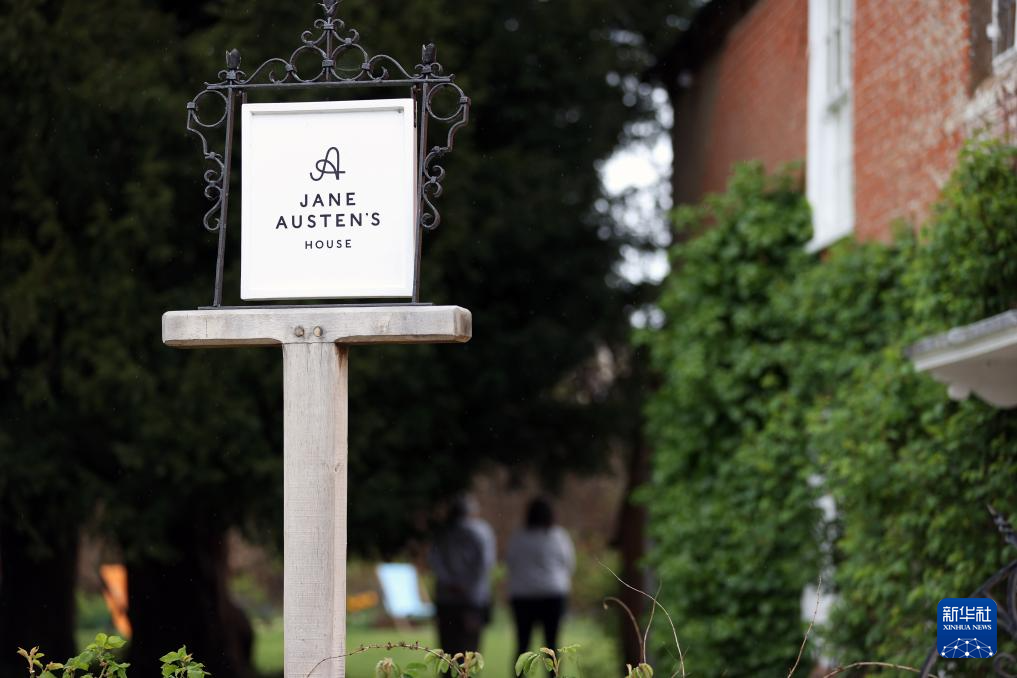 这是4月18日在英国汉普郡乔顿村拍摄的简·奥斯汀故居的标识牌。