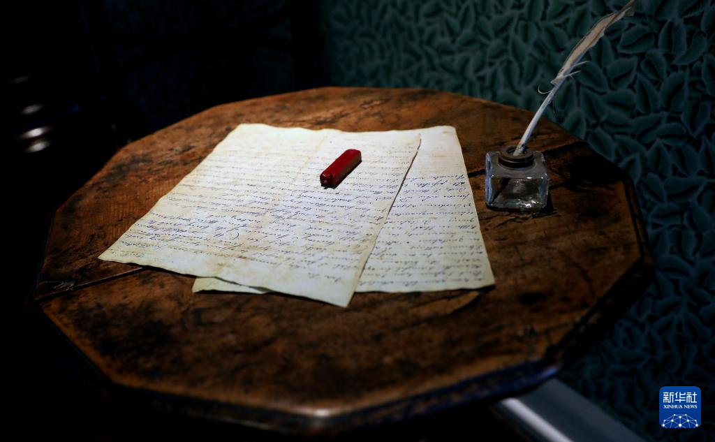 这是4月18日在英国汉普郡乔顿村的简·奥斯汀故居内拍摄的展品。