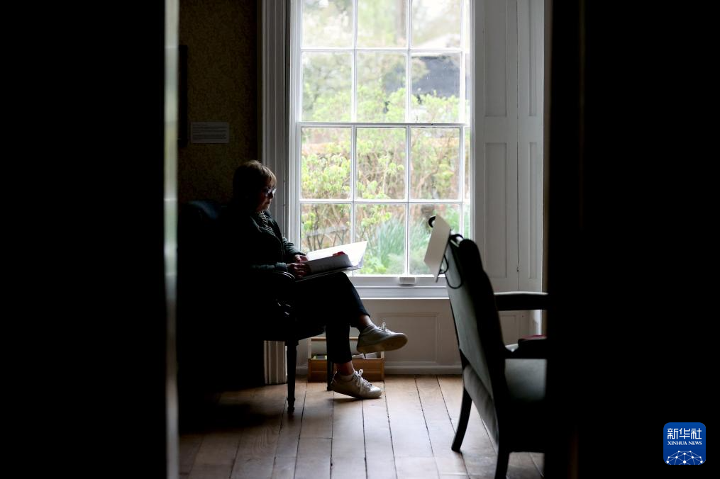 4月18日,一名女子在英国汉普郡乔顿村的简·奥斯汀故居内阅读。