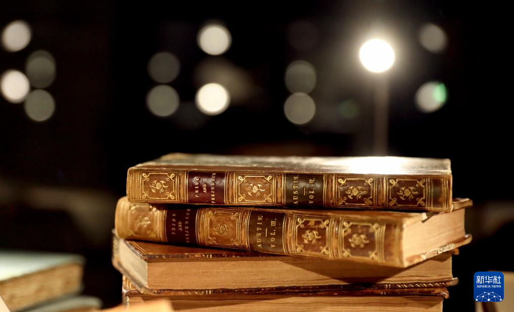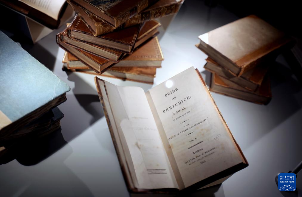 这是4月18日在英国汉普郡乔顿村的简·奥斯汀故居内拍摄的《傲慢与偏见》小说初版。