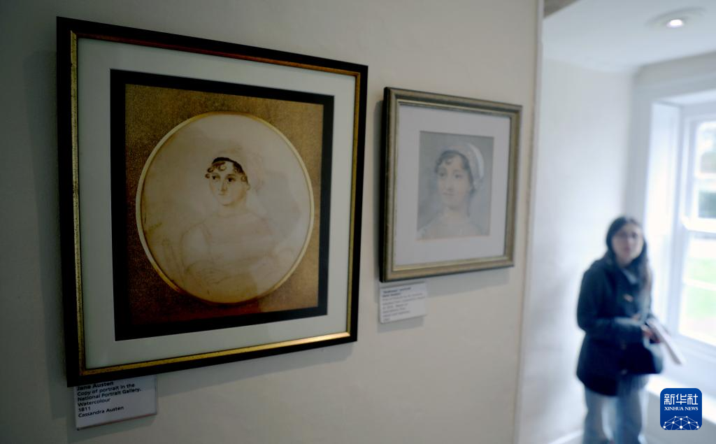 这是4月18日在英国汉普郡乔顿村的简·奥斯汀故居内拍摄的奥斯汀画像。