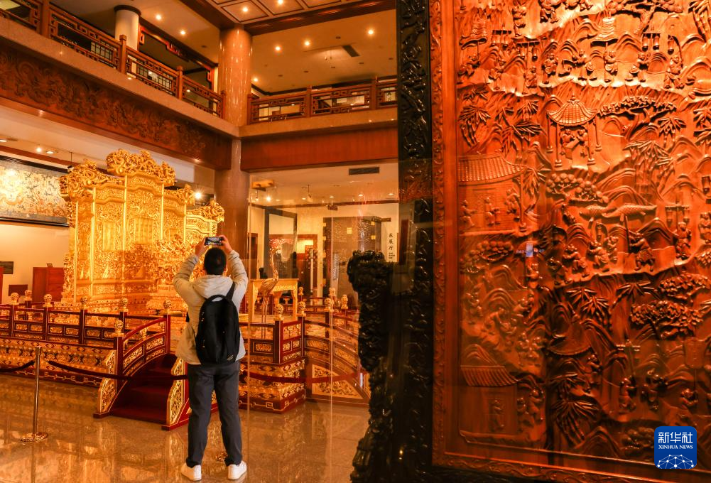 3月15日,游客在中国紫檀博物馆内拍摄。