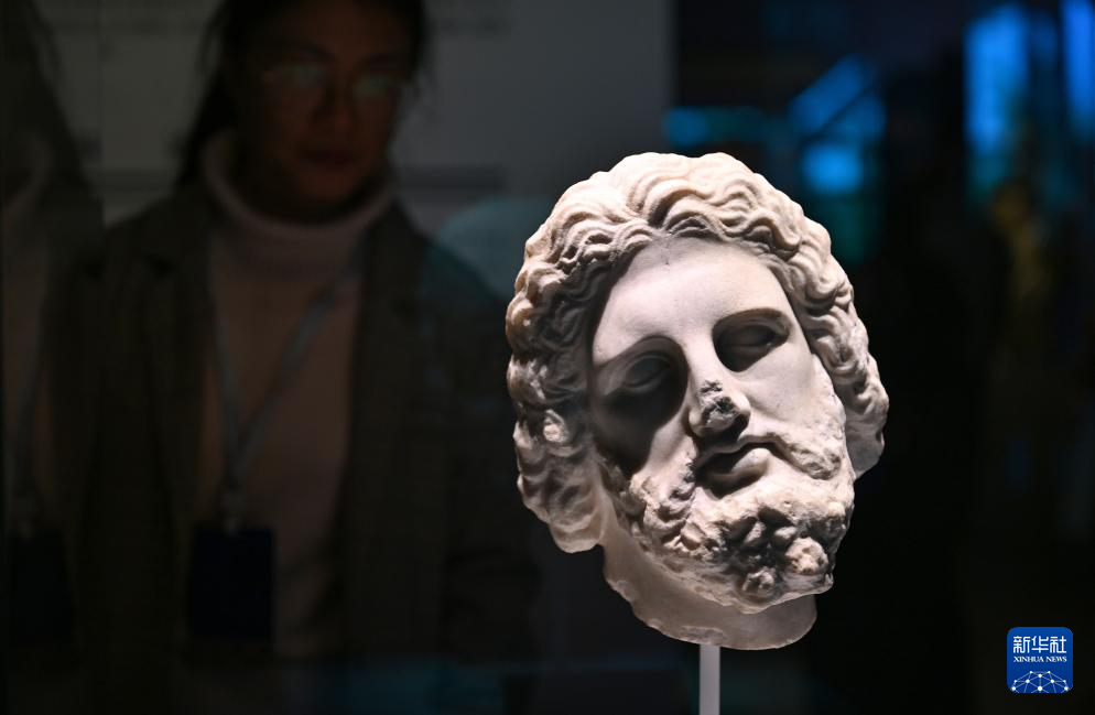 3月20日,观众参观展出的大理石头像。