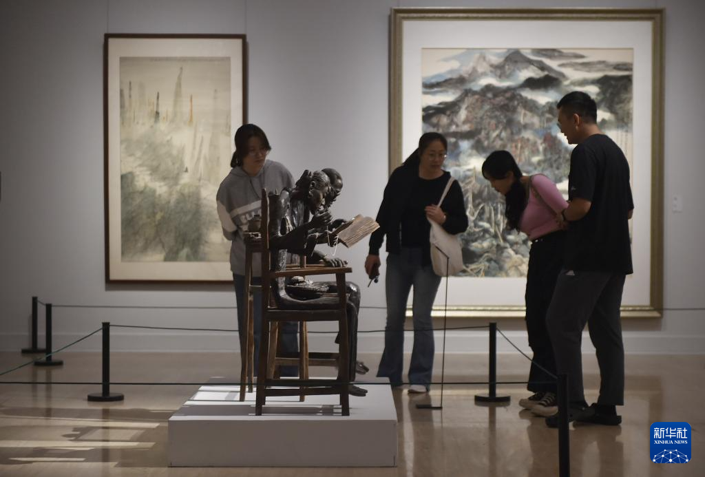 9月27日,观众在中国美术馆参观雕塑作品《苦旅共甘泉》。