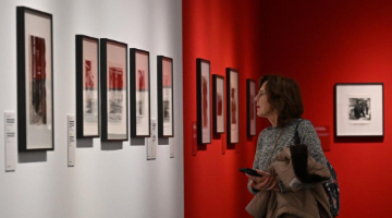 1月3日,观众在中国考古博物馆参观北朝湾漳壁画墓陶骑马俑展区。
