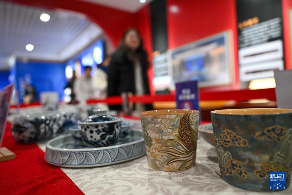 这是展出的由残疾人创作的陶瓷文创作品(2月4日摄)。