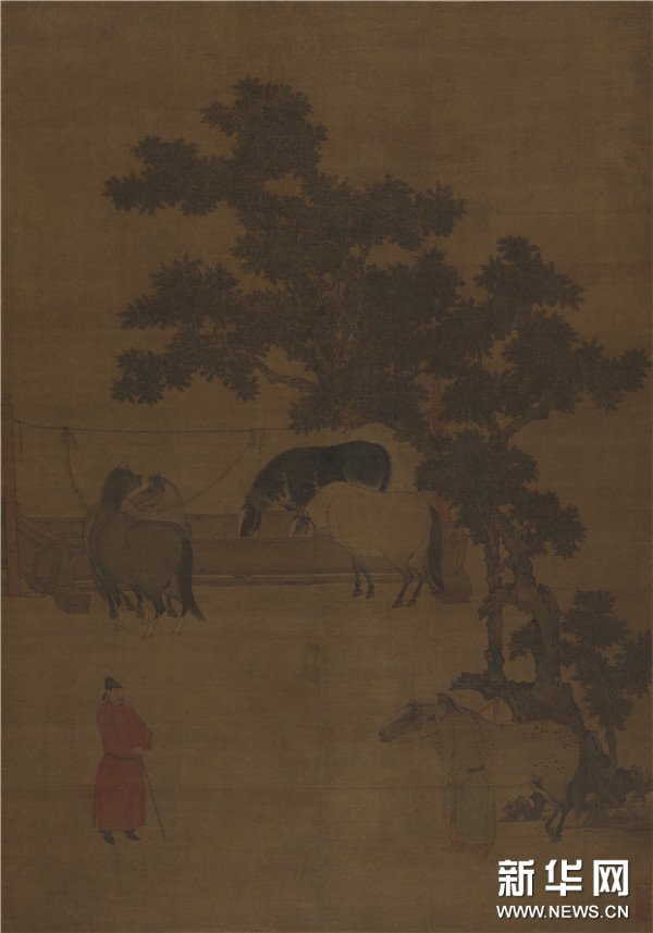 佚名 饲马图 绢本水墨设色 158.3cm×109.7cm 元 中国美术馆藏