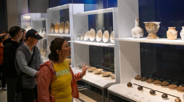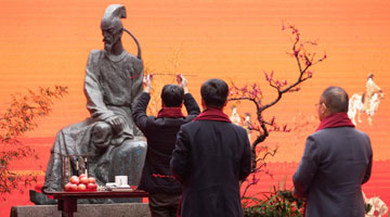 2月24日,人们在山东古建筑博物馆参观万字会旧址济南母院的琉璃影壁。