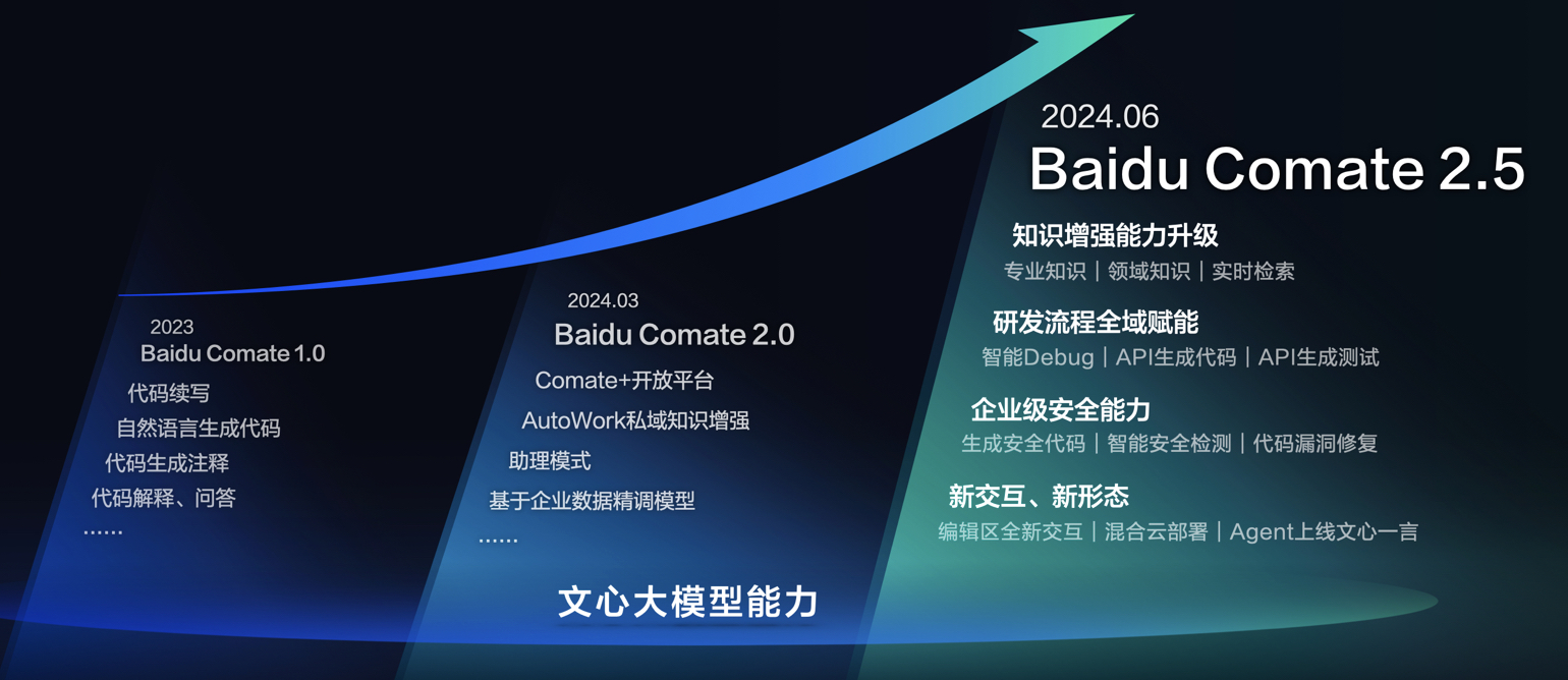 文心快码是基于文心大模型,结合百度二十年编程现场大数据打造的新一代智能编码助手,覆盖Java、Python、C++等100+种编程语言,支持JetBrains、VSCode等10+种主流 IDE。于去年6月份正式对外发布,目前已更新至2.5版本,集模型训练、推理加速、工程实践、安全保障四重技术创新于一身,不仅能高效完成基础编程任务,并在代码续写、代码解释、NL2Code、Code Debug 等能力上保持领先。